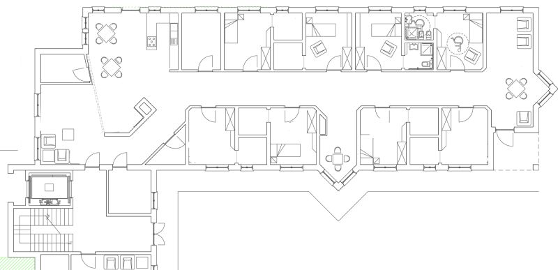 Questi aspetti di vita quotidiana consentono agli ospiti di rafforzare la parte residua di identità. L’identità del villaggio e l’orientamento sono supportati dall’uso del colore, studiato e progettato da Bottoli. Per il Paese Ritrovato sono stati selezionati dal Piano del Colore della città di Monza sedici colori cromatici e due acromatici. I colori principali sono due, il rosso e il giallo, che insieme alle relative gamme cromatiche vanno a definire le aree sud/ovest e nord/ovest del villaggio. Anche negli spazi interni il colore ha una funzione di orientamento, infatti ogni appartamento è caratterizzato da un colore dominante, visibile anche all’ingresso dell’abitazione, così da renderlo riconoscibile. Il Paese Ritrovato è quindi un villaggio dotato di tutti i servizi dove le persone con Alzheimer possono continuare a svolgere la loro vita quotidiana, in sicurezza e autonomia, assistiti al bisogno dal personale sanitario della Cooperativa La Meridiana. Un luogo dove il progetto di architettura diventa parte del programma di cura.