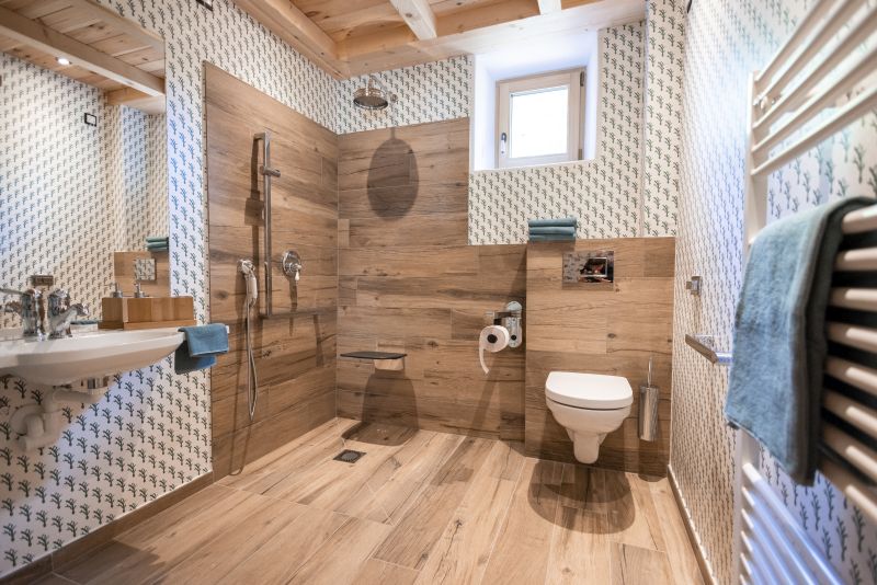 Questa tradizione di villeggiatura, che ha plasmato il concetto di “vacanza estiva”, è ancora oggi viva nella zona, ma si sta adattando alle esigenze del presente, con un’attenzione particolare all’inclusività e all’accessibilità. Haus Himmelfahrt, uno degli edifici storici della frazione che attualmente ospita quattro appartamenti vacanze, ha saputo rispondere alle esigenze di inclusività attraverso una progettazione attenta e mirata. Ogni aspetto della struttura è stato pensato per garantire l’accesso a tutti, dalle persone con disabilità fisiche permanenti a quelle con difficoltà temporanee o legate all’età. L’ingresso ei parcheggi sono stati progettati in modo da essere accessibili in sedia a rotelle. Inoltre l’edificio è dotato di un ascensore con comandi in Braille per garantire l’accesso a tutti i piani. Gli appartamenti non hanno soglie e sono dotati di porte scorrevoli e ampi balconi per facilitare i movimenti. Ogni bagno è privo di barriere architettoniche, con docce a soglia zero e maniglioni di supporto. Le cucine sono accessibili a persone con mobilità ridotta, con piani di lavoro e elettrodomestici facilmente raggiungibili.