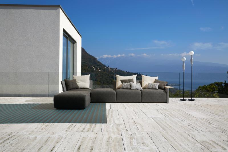 Sedute e cuscini hanno un’imbottitura in gommapiuma rivestita con fodera impermeabile, completamente sfoderabile, e disponibile in 3 varianti colore.