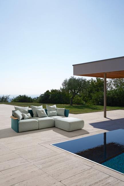 Grazie alla sua natura componibile, Begin lascia libero spazio alla fantasia e alle esigenze e si presenta sotto forma di poltrona o di divano a cui si possono aggiungere comodi pouf per creare isole e chaise longue e aggiungere comfort.
