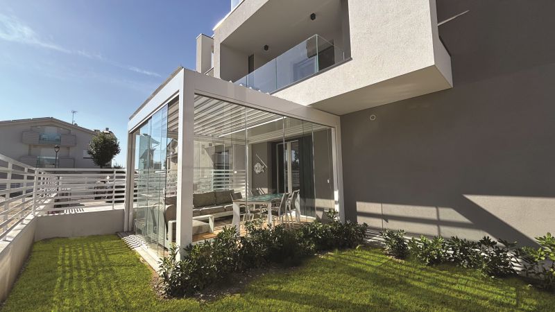 Il risultato è uno spazio esterno elegante, protetto, confortevole e in perfetta armonia con l’ambiente circostante, come nel caso di questa abitazione privata a Misano Adriatico, dove è stata installata una pergola Oskura Orienta per la quale è stata studiata una configurazione su misura: una parte delle lame è stata mantenuta in posizione fissa per garantire il corretto movimento delle sezioni orientabili, evitando qualsiasi interferenza con il balcone del piano superiore. Questa realizzazione evidenzia la versatilità progettuale di questa pergola che è in grado di adattarsi a ogni contesto architettonico, senza rinunciare a comfort e continuità estetica.