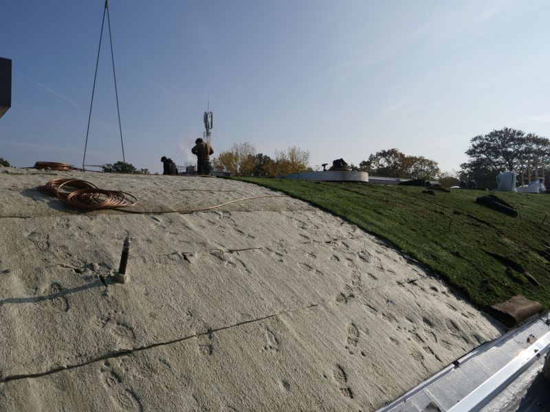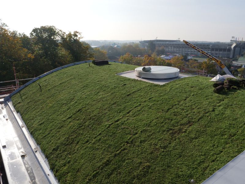 L’impermeabilizzazione di un tetto verde, per noi, non è mai stato un problema: il nostro Vaeplan è resistente alle radici, quindi basta semplicemente sovrapporre lo strato di vegetazione. – afferma Christoph Lecointre, Project Manager di Derbigum In questo progetto la sfida, data dalla forma parabolica del tetto, era far restare tutto nella propria posizione, senza alcun slittamento. Avendo lavorato con un plastificante stabile, il vantaggio di Vaeplan è stato mantenere la propria flessibilità a lungo termine, per una durata prevista di 30-35 anni.”