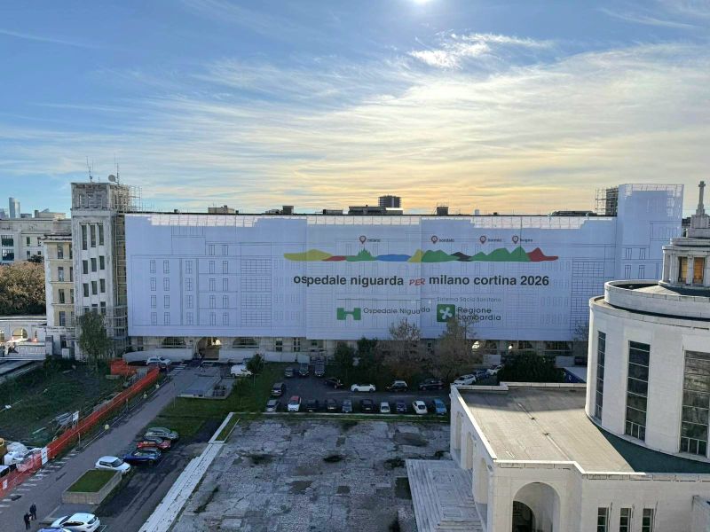 Per le Olimpiadi Milano-Cortina 2026, l’Ospedale Niguarda di Milano è stato interessato da un articolato intervento di riqualificazione che ha trasformato un cantiere complesso in un caso concreto di applicazione della fotocatalisi in ambito urbano. Nel corso dei lavori, i ponteggi dell’ospedale sono stati rivestiti con una maxi-superficie tessile stampata di oltre 21.000 m², tessuto fornito e trattato da Giovanardi con la tecnologia Giopuretex a base fotocatalitica di PURETi. La soluzione nasce dalla collaborazione tra Giovanardi, Pureti Italia e il Gruppo Italtelo: un lavoro congiunto che ha dato vita a una copertura temporanea capace di diventare un involucro urbano attivo, in grado di interagire con l’ambiente assorbendo le sostanze inquinanti e purificando l’aria.
