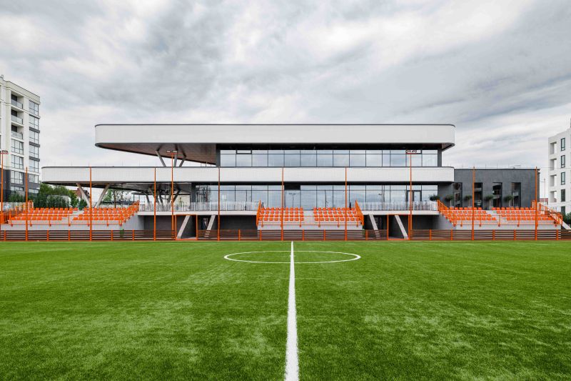 Originariamente concepito come un centro di allenamento calcistico per bambini, il progetto si è evoluto in una vera e propria destinazione comunitaria per coinvolgere anche genitori, allenatori e personale dedicando a ciascun gruppo di utenti un percorso dedicato. Il piano principale ospita aule e una caffetteria con vista panoramica sul campo; il piano superiore offre aree fitness, boxe e yoga per gli adulti; e il piano inferiore integra spogliatoi e tribune in cemento nel pendio, progettati per garantire comfort ergonomico e una visuale libera. Colonne inclinate, balconi fluttuanti e facciate trasparenti generano un senso di leggerezza e movimento.