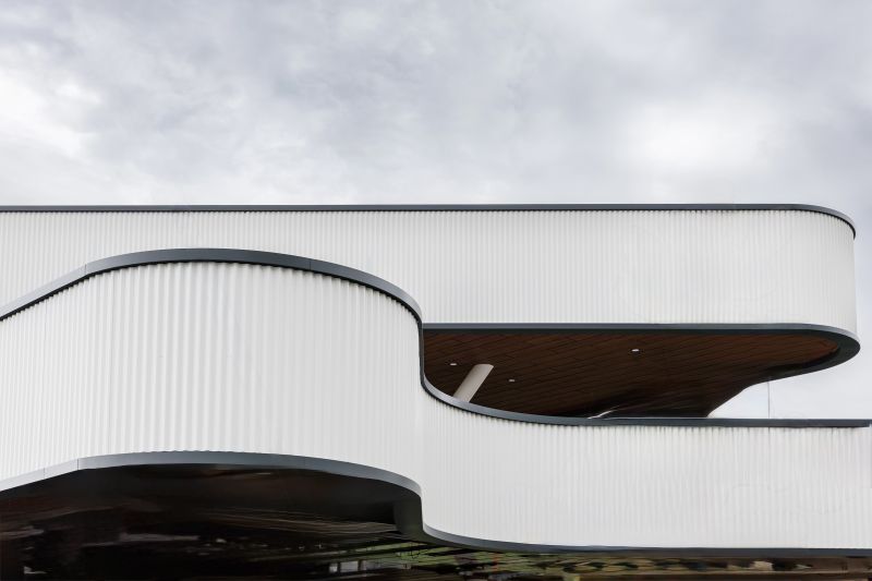 Originariamente concepito come un centro di allenamento calcistico per bambini, il progetto si è evoluto in una vera e propria destinazione comunitaria per coinvolgere anche genitori, allenatori e personale dedicando a ciascun gruppo di utenti un percorso dedicato. Il piano principale ospita aule e una caffetteria con vista panoramica sul campo; il piano superiore offre aree fitness, boxe e yoga per gli adulti; e il piano inferiore integra spogliatoi e tribune in cemento nel pendio, progettati per garantire comfort ergonomico e una visuale libera. Colonne inclinate, balconi fluttuanti e facciate trasparenti generano un senso di leggerezza e movimento.