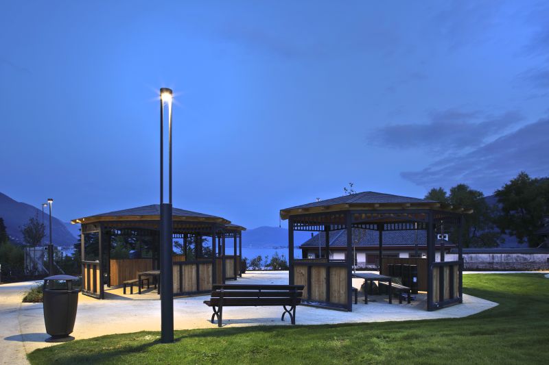 Il progetto illuminotecnico del parco è stato affidato all’azienda bresciana Francesconi Architectural Light che ha saputo enfatizzare il contesto naturalistico. La scelta è ricaduta sui bollard MOK, una serie caratterizzata da geometrie essenziali e da un sistema di fissaggio totalmente a scomparsa. La struttura si presenta in alluminio primario, un materiale resistente all’ossidazione, con diffusori in vetro extra chiaro. Il design ricercato, unitamente alle caratteristiche tecniche, permette a questi apparecchi di mimetizzarsi con le moderne architetture. Le sorgenti LED di ultima generazione aggiornate completano la qualità estrema del prodotto grazie al minimo consumo e massima resa.