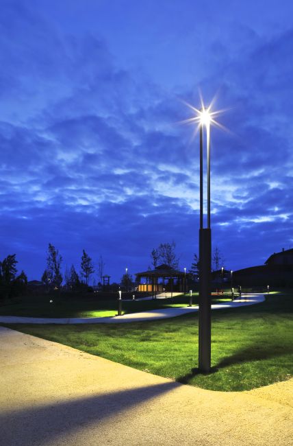 L’apparecchio è stato scelto per le sue caratteristiche illuminotecniche, soprattutto per la distribuzione luminosa conforme agli standard contro l’inquinamento luminoso, una problematica ricorrente nelle città popolose. Diverse le varianti di MOK utilizzate nel progetto: la versione da 50 centimetri è stata posizionata nei vialetti di accesso, la versione da 1 metro per i viali più importanti fino ad arrivare ai 3,30 metri per gli ampi spazi di aggregazione.
