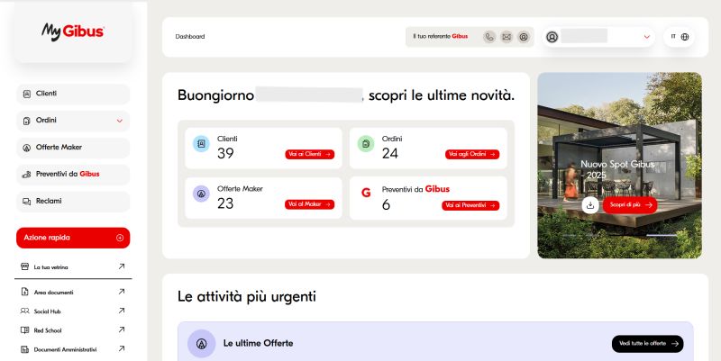 La piattaforma è strutturata in cinque diverse sezioni, contraddistinte anche da una differente identificazione cromatica per facilitare ulteriormente la navigazione: Clienti, Ordini, Offerte Maker, Preventivi e Reclami. Il servizio include infatti una vetrina online che i rivenditori potranno completare con nome del punto vendita, orari e descrizione dell’attività e tutti questi dati risulteranno poi visibili sul sito web di Gibus, consultando la sezione dedicata alla ricerca dei punti vendita. Completano l’offerta ulteriori servizi aggiuntivi: da My Gibus si può accedere infatti alle aree Social Hub, strumento con cui l’azienda affianca la rete anche dal punto di vista della comunicazione sui social network, e Red School, piattaforma web ideata da Gibus per erogare corsi di formazione. Infine, è disponibile l’accesso diretto al portale Bim Object e all’area Documenti, in cui effettuare il download di materiali tecnici e marketing.