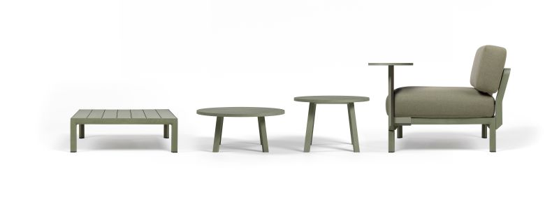 La palette cromatica dei tavolini è quella della resina rigenerata: i materici cactus, terra, gesso e basalto sono parte integrante dell’identità del programma MAXIMO, trasformando ogni configurazione in un paesaggio outdoor – domestico o contract – tutto da vivere.
