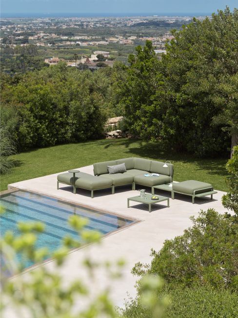 La palette cromatica dei tavolini è quella della resina rigenerata: i materici cactus, terra, gesso e basalto sono parte integrante dell’identità del programma MAXIMO, trasformando ogni configurazione in un paesaggio outdoor – domestico o contract – tutto da vivere.