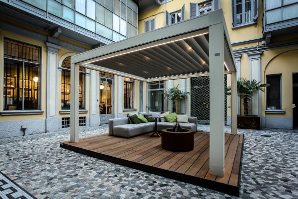 La pergola bioclimatica Opera è quindi stata la protagonista di un perfetto esempio di come sia possibile creare ambienti in cui dentro e fuori si fondono, per beneficiare del contatto con la luce naturale, autentica fonte di benessere per il corpo e la mente.