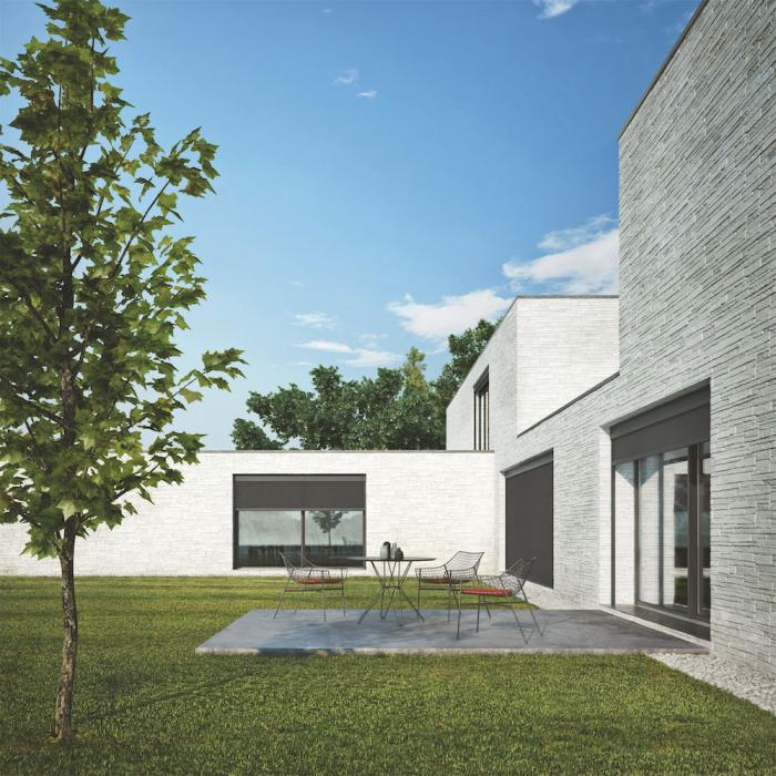 Entrambe le tende inoltre sono dotate di un raffinato box, che nasconde le componenti tecniche e la tenda, quando chiusa. Lo stesso box può essere integrato con strip led con luce dimmerabile ad alto potere illuminante, installabili sul profilo frontale così come sul corpo principale, risolvendo con eleganza la necessità di illuminare lo spazio sottostante la tenda.