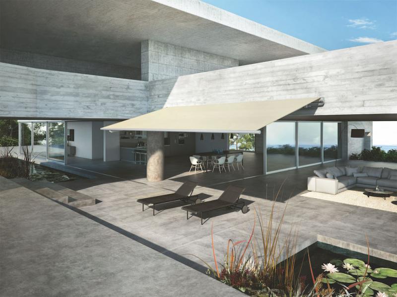 Elegante e tecnologica, T-Way è dotata di bracci estensibili, la cui movimentazione può essere controllata tramite telecomando, ma anche azionata automaticamente in caso di sole o maltempo.