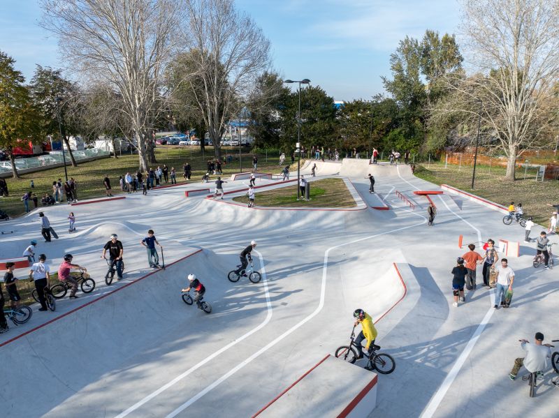 Il nuovo skatepark è realizzato in calcestruzzo armato gettato in opera, che garantisce resistenza, prestazioni tecniche e ridotta manutenzione. Sono stati inseriti ostacoli con misure e caratteristiche non presenti negli impianti vicini, in modo da attrarre praticanti anche dai paesi vicini e favorire la circolazione di sportivi, istruttori e allenatori. L’area include superfici lisciate per lo scivolamento e zone dedicate alla pausa e alla preparazione, con panchine, spazi di attesa e un’area fitness per il riscaldamento muscolare. Questa configurazione permette agli utenti di prepararsi in sicurezza e amplia l’offerta del palazzetto dello sport contiguo.