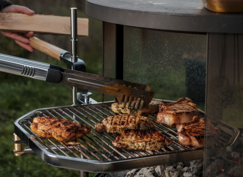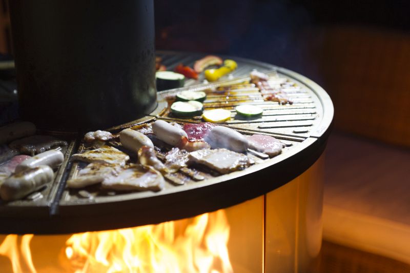 Costituito da un corpo centrale verniciato nero per uso alimentare, è dotato di condotto fumi e di una camera di combustione rivestita a scelta in refrattario o in acciaio. Chiuso da 4 lastre in vetroceramico, che impediscono la dispersione di cenere e l’emanazione di cattivi odori, offre una visione a 360° sul fuoco scoppiettante. Surprise è anche una cucina all’aperto a tutti gli effetti: permette inoltre di cucinare le pietanze direttamente sulla piastra riscaldante (disponibile in ghisa o in vetroceramico) e di scaldare piatti già pronti adagiando pentole e padelle direttamente sul camino oppure, utilizzando la griglia (ottagonale o rotonda) e il doppio braccio girevole, si trasforma in barbecue.