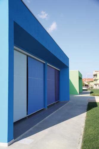 Resstende ha così installato sulle facciate della scuola 13 “moduli cromatici” motorizzati con guide L1 e cassonetto C105 in alluminio estruso, composto da una parte mobile ispezionabile per l’eventuale manutenzione della tenda. Il fondale FD42 in alluminio estruso presenta un profilo in ferro zincato ed è corredato da tappi laterali in derlin. Il sistema motorizzato è abbinato ad una centralina di comando sole/vento con sensore, che permette di regolare l’ombreggiamento delle aule interne.
