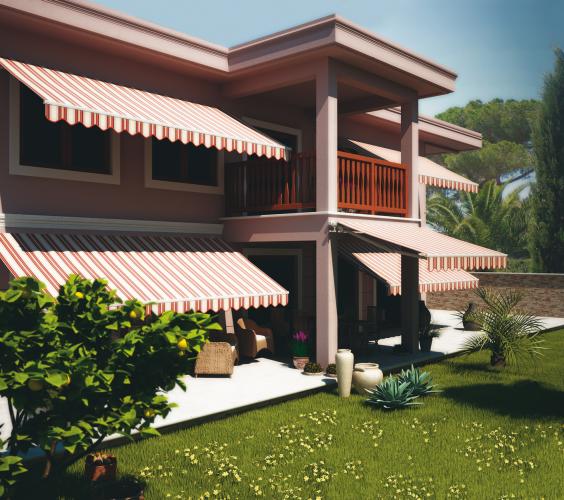 Manifattura Corti può creare in collaborazione con architetti e designer, ambienti coordinati con le stesse tonalità di colore, per i vari elementi outdoor: tende da sole, mobili da giardino, ombrelloni, lettini da spiaggia, sottoteli per tende a pergola e laterali ombreggianti.